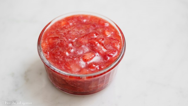 - 苺から水分が出て煮る状態になり、少しとろみがついてきたら火を止めて冷ます(冷めるととろみが強くなる)